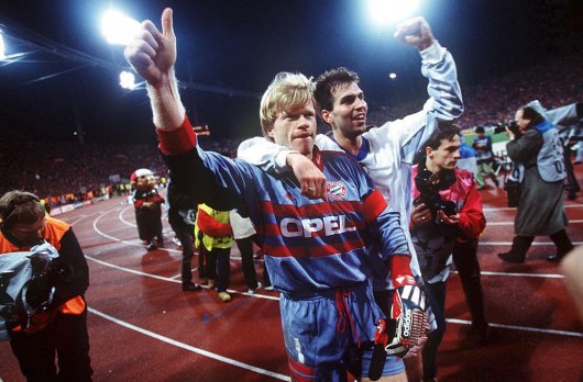 22. Оливер Кан и Баббель могут облегченно вздохнуть. Они только что прошли грозную "Динамо-машину" Лобановского и сыграют в финале ЛЧ 1998/99. А наше счастье было так близко.