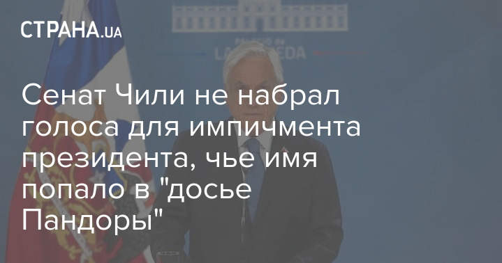 Во вторник сторонникам импичмента президента Чили Себастьяна Пиньеры не удалось набрать необходимое количестово голосов в верхней палате парламента для импичмента главы государства, которого заподозрили в коррупции на основании документов "досье Пандоры" (Pandora Papers).