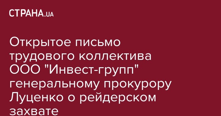 Трудовой коллектив Общества с ограниченной ответственностью «Инвест-групп» вынужден обратиться к Вам с просьбой защитить наше предприятие и его сотрудников от постоянных угроз и попыток рейдерского захвата со стороны «заслуженного рейдера» Украины - г-на Дубового Александра Федоровича.