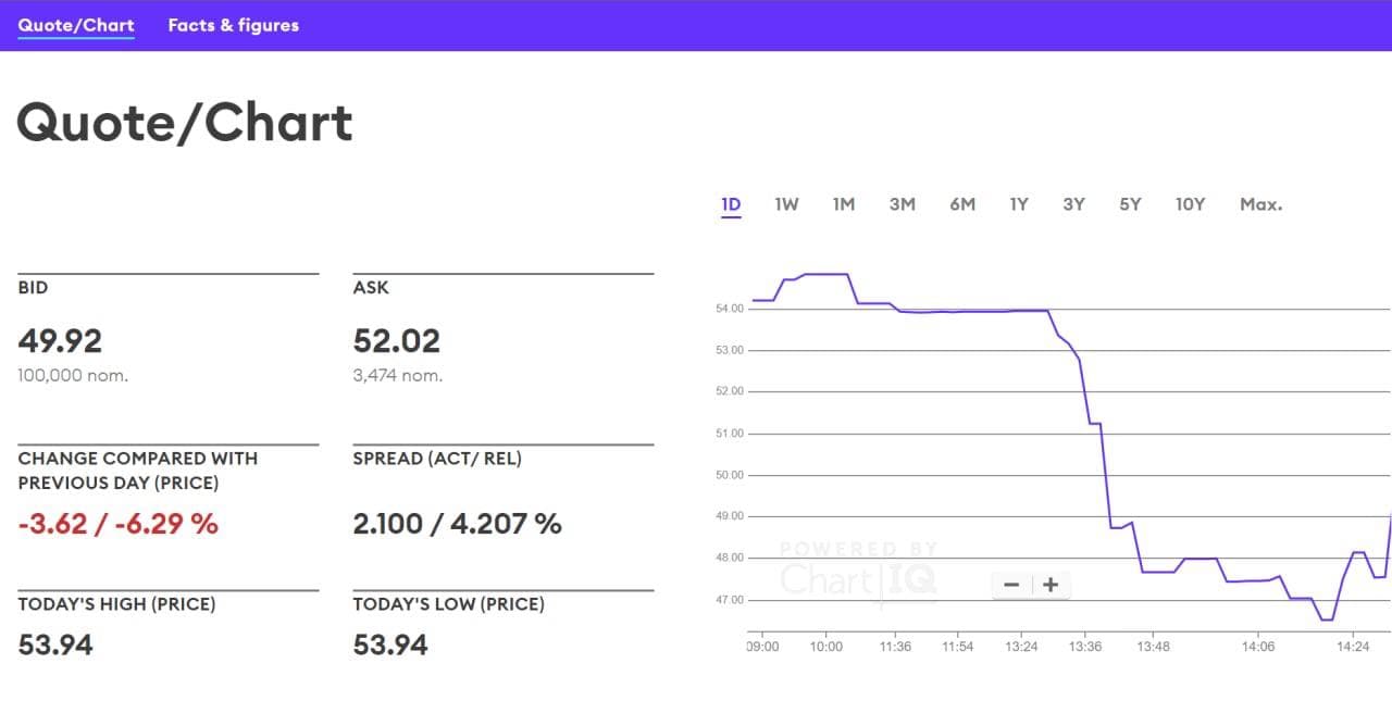 Судя по графику, пик падения DTEK Finance PLC DL-Notes 2021пришелся на 14:20, после этого график пошел вверх.