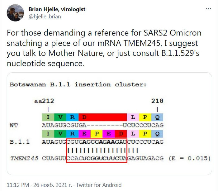 Об этом на своей странице в Твиттере сообщает вирусолог Брайан Хьелле.