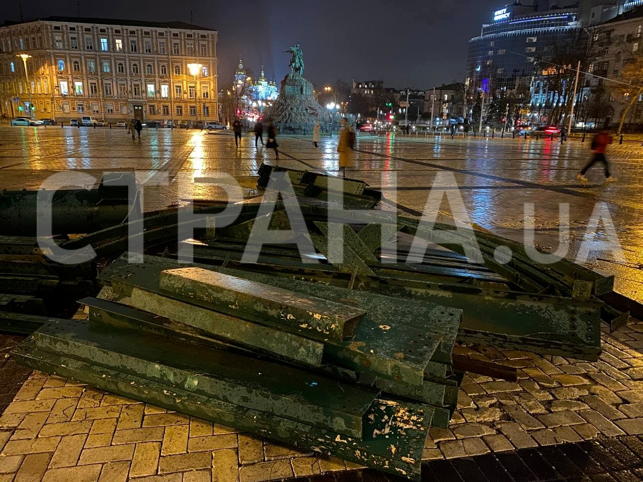 Откроют новогоднюю ёлку 19 декабря, в 17:00, в День святого Николая. А пока конструкции новогоднего дерева просто лежат на Софийской площади.