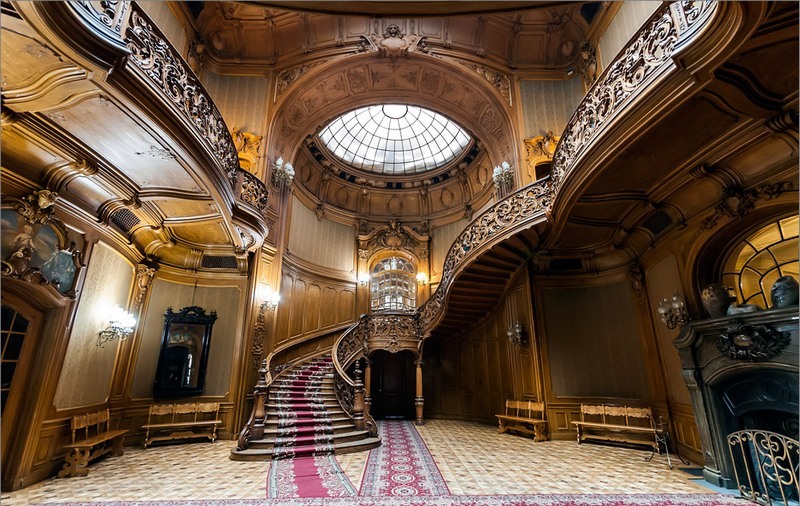 Это место давно ветшает и находится в запустении, но сохранило величественную красоту благодаря фасаду с атлантами, парадной лестнице с дубовыми резными перилами в вестибюле, шелковым обоям, каминам и люстрам, как в театре, а также стеклянному потолку.