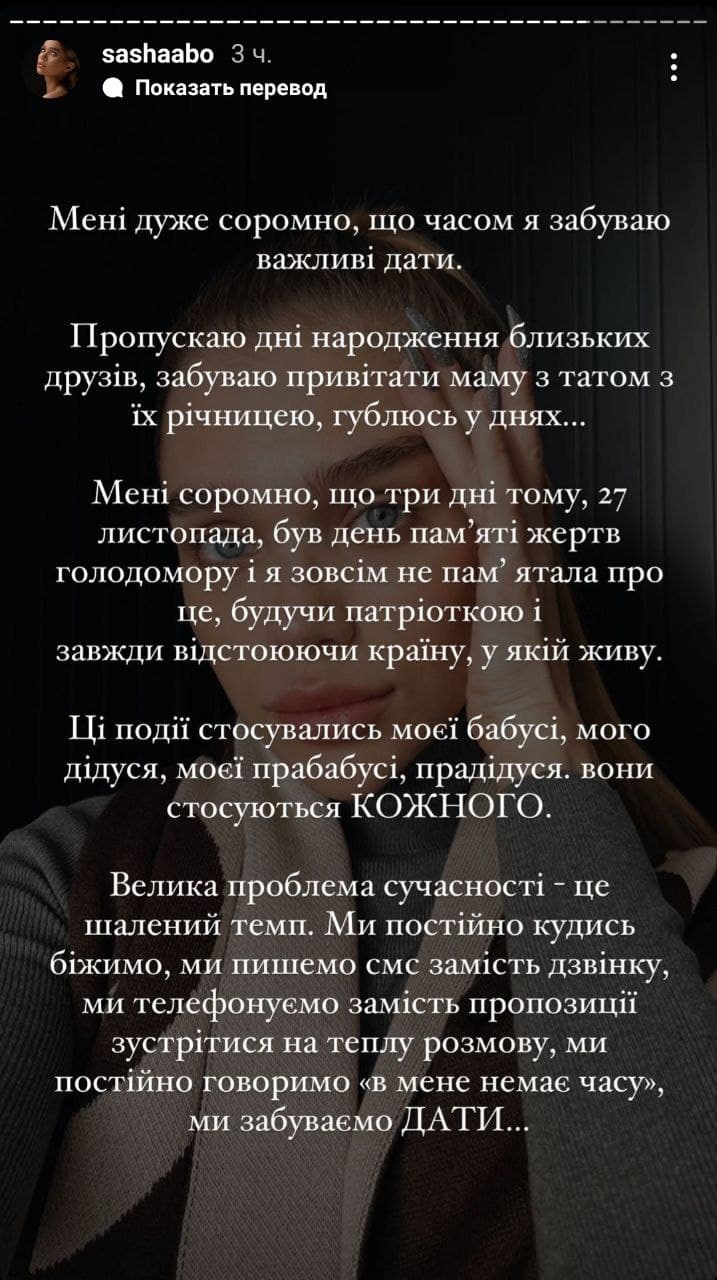 После одного извинения он опубликовал второе, написав, что его сториз не имели отношения к голодомору и он "не мог подумать в ту секунду, какой это день и сколько боли и печали за ним стоит".
