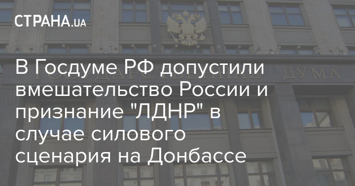 В Государственной Думе Российской Федерации заявили, что в случае силового сценария на Донбассе Москва вмешается и может признать независимость "ЛНР" и "ДНР".