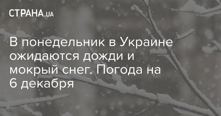 В понедельник, 6 декабря, в Украине ожидается незначительное потепление и массовые дожди с мокрым снегом. Повезет только восточной части страны - там без осадков.