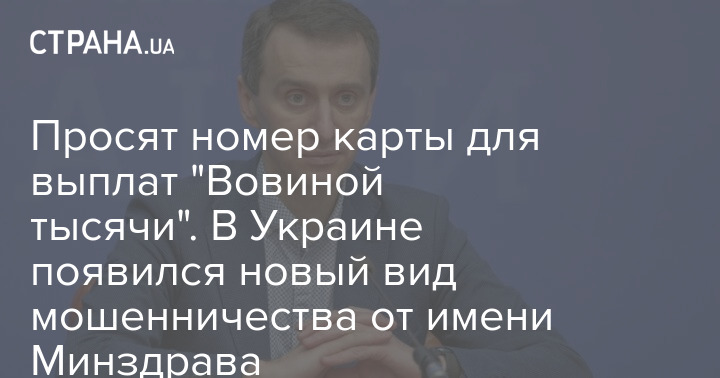 Глава Министерства здравоохранения Украины Виктор Ляшко сообщил, что от имени ведомства украинцам присылают информацию с просьбой предоставить номер карты. Якобы для получения 1000 гривен за полный курс вакцинации от коронавируса.
