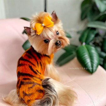 Добавить полоски в образ можно, например, в маникюре. Или же в образ домашнего любимца (не забывайте уточнить у мастера, чтобы краски были специальные и не навредили здоровью вашей собачки).
