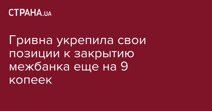 Гривна укрепила свои позиции к закрытию межбанка еще на 9 копеек