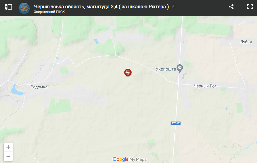 В Черниговской области произошло землетрясение. Источник: Главный центр спецконтроля.