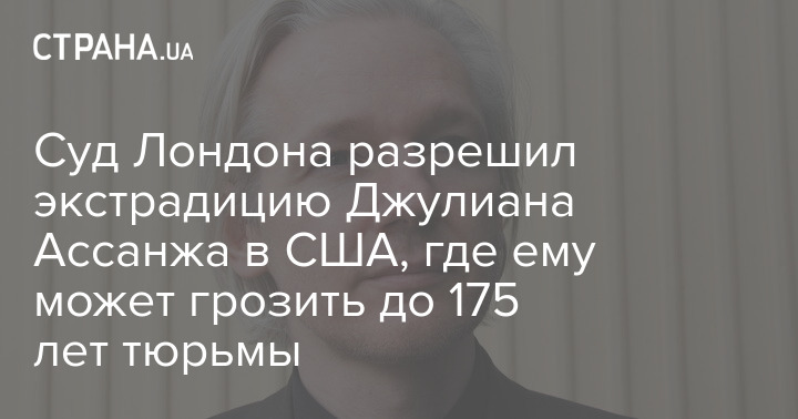 Cуд Лондона разрешил экстрадицию Джулиана Ассанжа в США, где ему может грозить до 175 лет тюрьмы