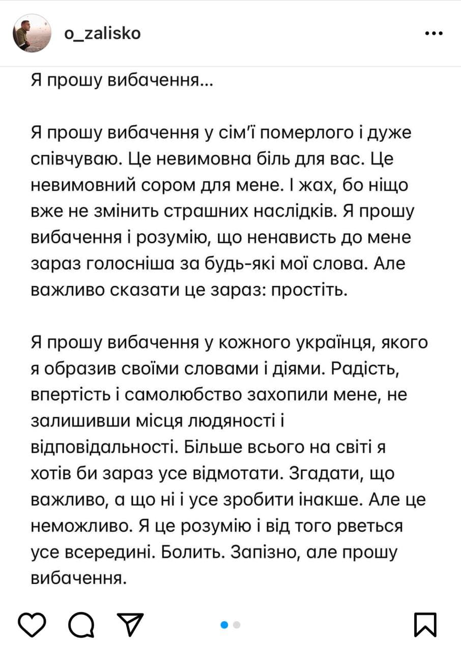 Сам Залиско после смерти Славитича в своём Инстаграме принёс публичные извинения семье умершего.