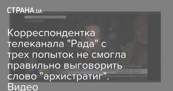 После запуска в здании парламента обновленного телеканала "Рада" этот медиаресурс не перестает удивлять своих зрителей. Сегодня одна из его сотрудниц не смогла в прямом эфире с трех попыток правильно произнести слово "архистратиг" несмотря на то, что ее поправляли рядом стоявшие люди.