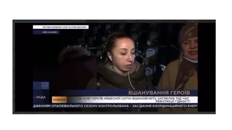 Корреспондентка по имени Анна вела репортаж с Аллеи героев небесной сотни.