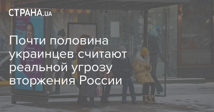 Почти половина украинцев считают реальной угрозу вторжения России на территорию Украины, 41,4% жителей страны полагают, что нападения не будет.