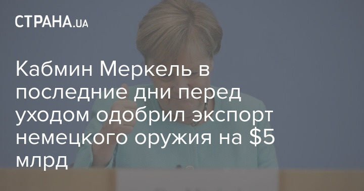 Бывшее правительство Германии под руководством Ангелы Меркель за последние несколько дней пребывания у власти одобрило экспорт вооружения почти на 5 млрд долларов. Об этом сообщает DW.