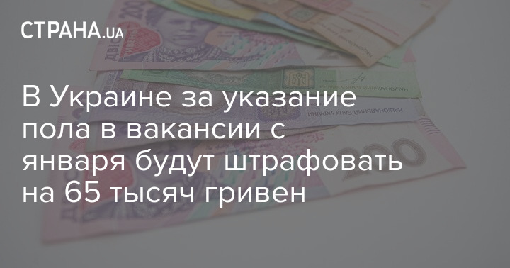 В Украине с 8 января вступят в силу поправки в рекламное законодательство, которые будут предусматривать, что за указание пола в вакансии можно будет получить штраф в размере 65 00 гривен.
