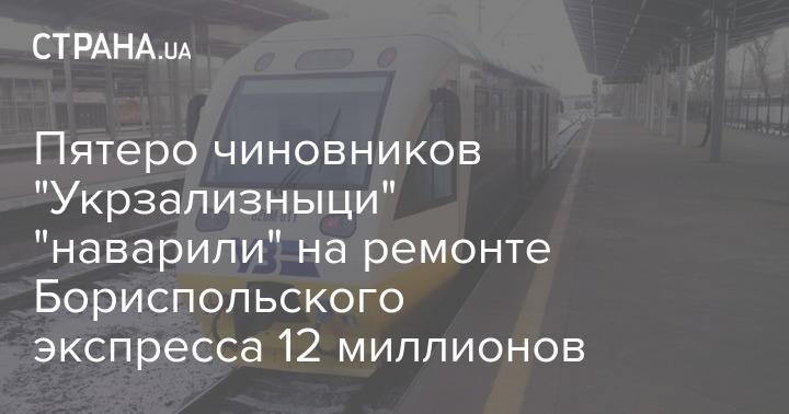 Пятерых чиновников АО "Укрзализниця" и его регионального филиала "Юго-западная железная дорога" подозревают в хищении 12 миллионов гривен, выделенных на ремонт рельсовых автобусов, которые курсируют на маршруте между Киевом и аэропортом "Борисполь".
