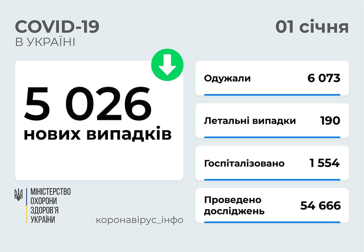 По состоянию на 1 января, количество зараженных коронавирусом в Украине увеличилось за сутки на 5 026 человек. Это меньше, чем в последние три дня, когда фиксировали от 5 454 до 7 029 заражений в день.
