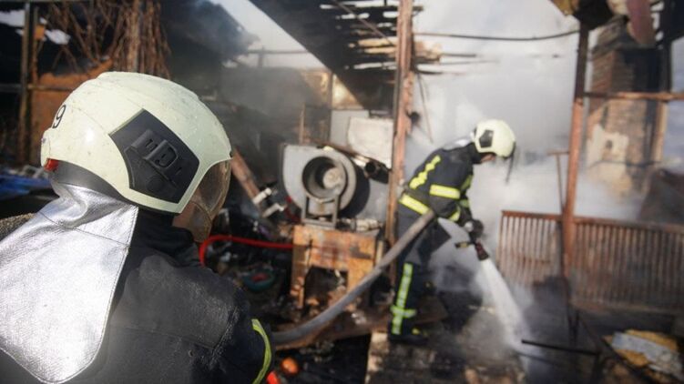 В Киеве горело здание яхт-клуба. Фото: ГСЧС