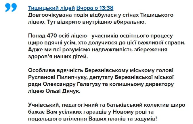 Об этом стало известно два дня назад, 3 января, на странице лицея в Facebook.