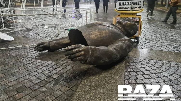 В Казахстане протестующие смогли повалить памятник Назарбаеву. Фото