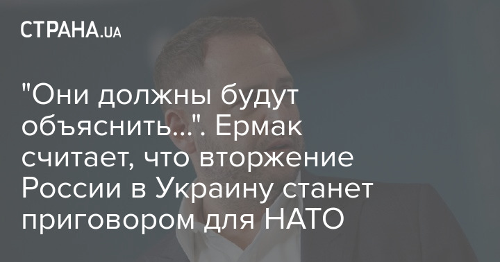 "Они должны будут объяснить...". Ермак считает, что вторжение России в Украину станет приговором для НАТО