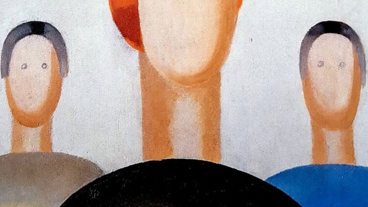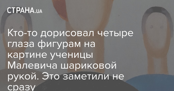 Кто-то дорисовал четыре глаза фигурам на картине ученицы Малевича шариковой рукой. Это заметили не сразу