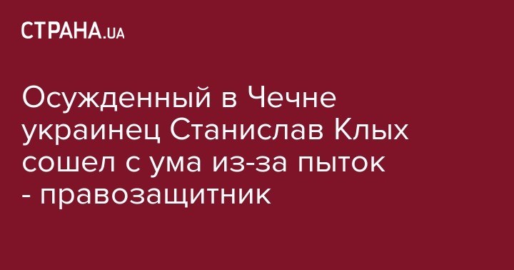 Украинец Станислав Клых, содержащийся грозненском СИЗО в Чечне, сошел с ума из-за пыток, которые к нему применяли при задержании и во время предварительного следствия. Об этом сообщает Радио Свобода со ссылкой на российскую правозащитницу, члена Общественной наблюдательной комиссии Москвы по контролю за соблюдением прав заключенных Зою Светову.