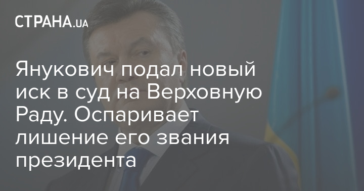 Бывший президент Украины Виктор Янукович подал иск в Окружной административный суд Киева (ОАСК) против Верховной Рады. Он требует признать отсутствие у парламента полномочий лишать звания президента Украины способом иным, кроме как путем импичмента.