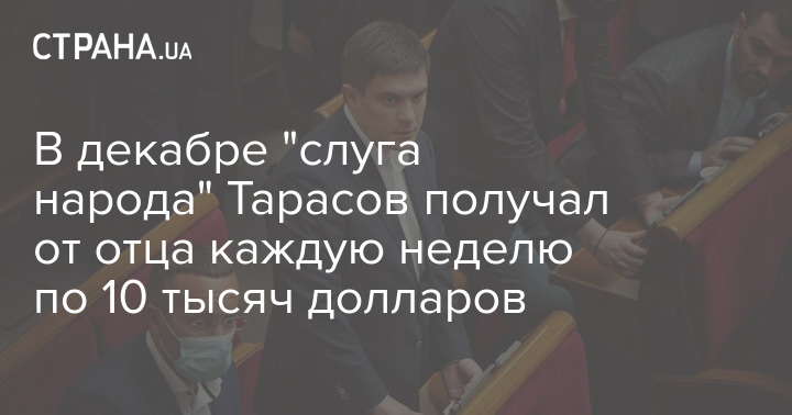 В декабре "слуга народа" Тарасов получал от отца каждую неделю по 10 тысяч долларов