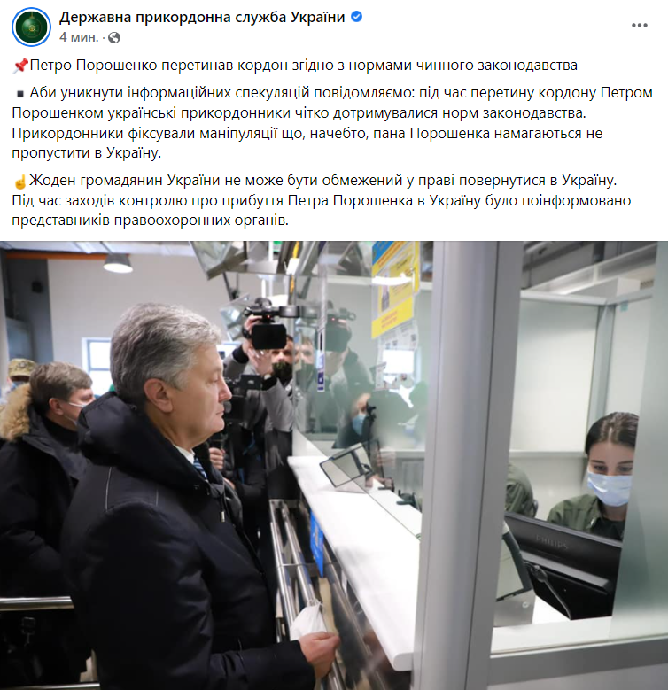 10:42 В Госпогранслужбе назвали манипуляцией заявление Порошенко, что его пытались не пустить в страну.
