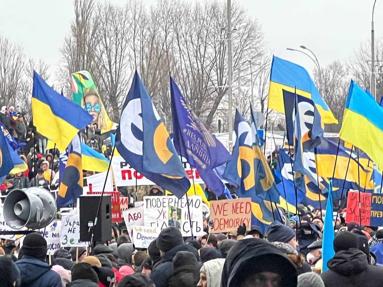 21:22 Сторонники Петра Порошенко призывают людей не расходиться. Но пока отток продолжается — пошел снег и дело близится к ночи.