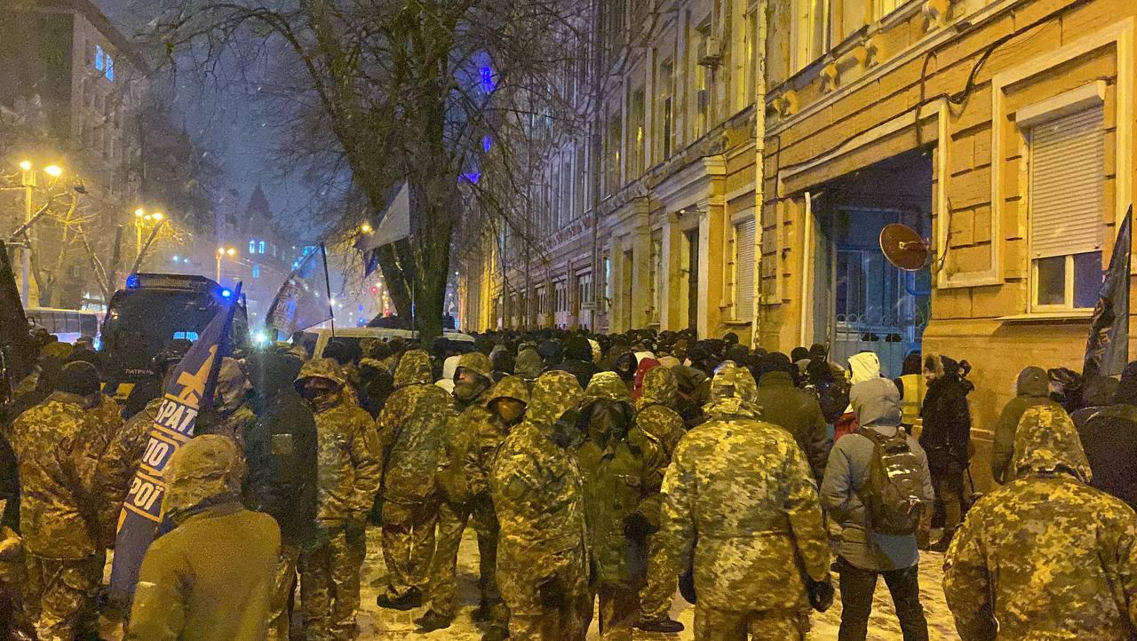 "Знаете, какой план Банковой? Они хотят, чтобы мы разошлись, а они арестовали нашего лидера. Дадим ли мы им это сделать?" - заявил один из участников протеста, на что толпа дружно ответила "нет".