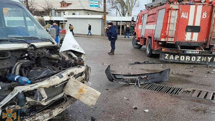 "15 января в 10:46 на перекрестке ул. Космической и Совхозной, Коммунарского района города (Запорожье - Ред.), водитель маршрутного такси "Мерседес Sprinter", не заметив и не услышав спецсигналы пожарно-спасательного автомобиля, следовавшего на пожар, совершил столкновение с ним", - говорится в сообщении.