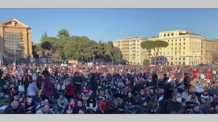 В Риме тысячи людей вышли на сидячую акцию протеста против санитарных пропусков. Видео