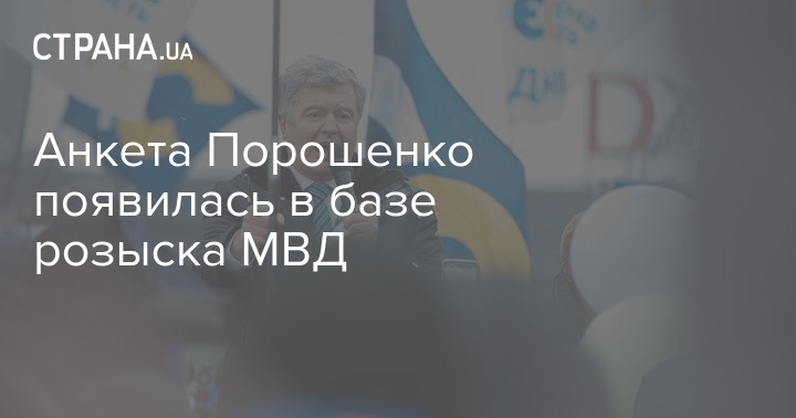 Анкета бывшего президента Украины, лидера "Европейской солидарности" Петра Порошенко появилась на сайте розыска Министерства внутренних дел Украины. Он значится во внутриукраинском розыске.