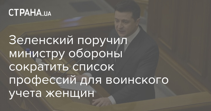 Президент Украины Владимир Зеленский обратился к министру обороны Алексею Резникову с поручением пересмотреть вопросы, связанные с воинским учетом женщин. В частности по сокращению перечня специальностей и профессий, родственных соответствующей военно-учетной специальности, согласно которым женщин берут на военный учет военнообязанных, учитывая реальные нужды обороны государства.