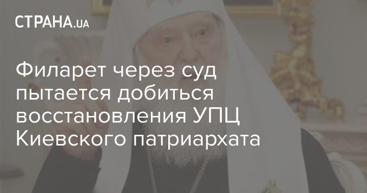92-летний Филарет хочет возродить Киевский патриархат УПЦ. Религиозный деятель подал иск в Окружной админсуд Киева с просьбой обязать Государственную службу по этнополитике и свободе совести осуществить регистрацию Постановления Поместного Собора Украинской Православной Церкви Киевского Патриархата, как отменяющего прекращение религиозного объединения УПЦ КП и религиозного центра религиозной организации "Киевская Патриархия Украинской Православной церкви Киев". Об этом сообщается на сайте ОАСК.
