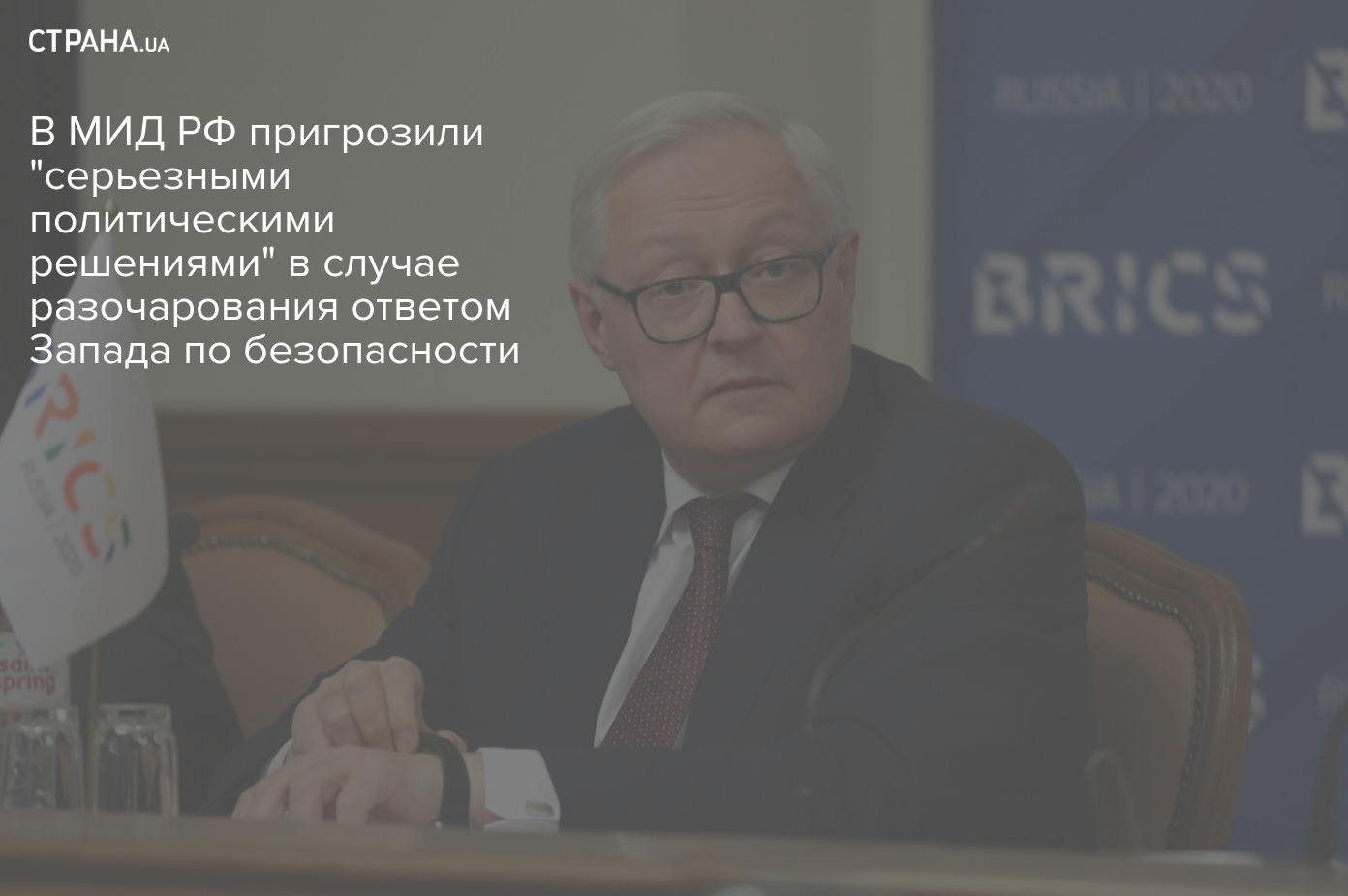 Замглавы Министерства иностранных дел (МИД) Российской Федерации Сергей Рябков заявил, Москве придется принимать "серьезные политические решения", в том случае если ее разочарует ответ Запада на запрошенные гарантии безопасности. Параллельно этому российский политик добавил, что Россия "никому не угрожает и не хочет конфликта", а только обеспечивает свои интересы.