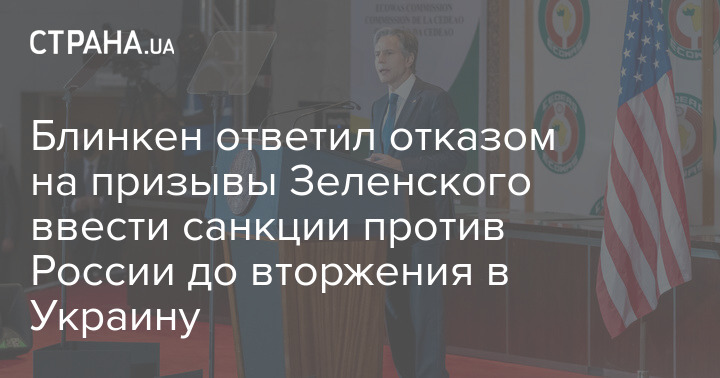 Госсекретарь США Энтони Блинкен заявил, что США не планируют вводить против России превентивные санкции еще до ее гипотетического вторжения в Украину, как об этом на днях попросил Владимир Зеленский.