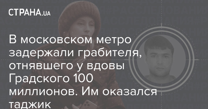 В Москве задержали подозреваемого в ограблении вдовы певца Александра Градского Марины Коташенко. Это ранее судимый гражданин Таджикистана Умеджон Жабборов.