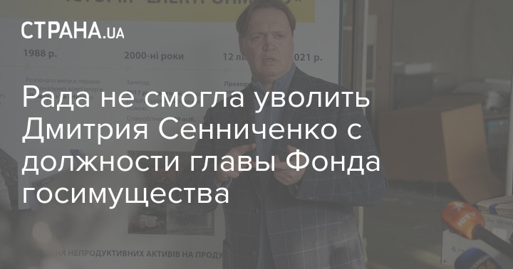Верховная Рада Украины не смогла уволить с должности главы Фонда госимущества Дмитрия Сенниченко, который возглавляет организацию с 2019 года.