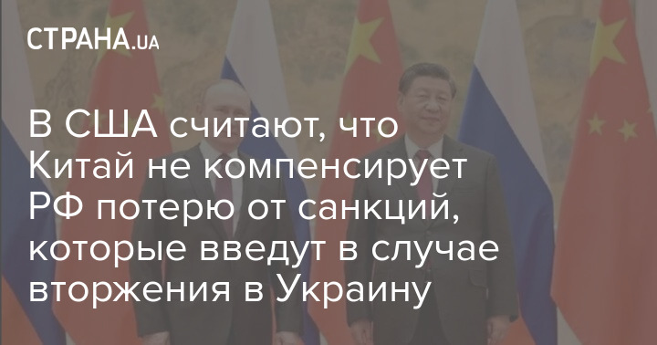 Советник по национальной безопасности Соединенных Штатов Америки Джейк Салливан заявил, что по оценкам Вашингтона Китай не в состоянии компенсировать России потери от санкций, которые готовят западные страны в случае российского вторжения в Украину.