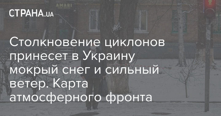 Столкновение циклонов принесет в Украину мокрый снег и сильный ветер. Карта атмосферного фронта