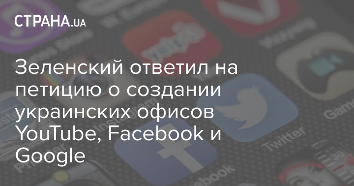 Президент Владимир Зеленский ответил на набравшую необходимые 25 тысяч голосов петицию о создании украинских офисов YouTube, Facebook и Google.