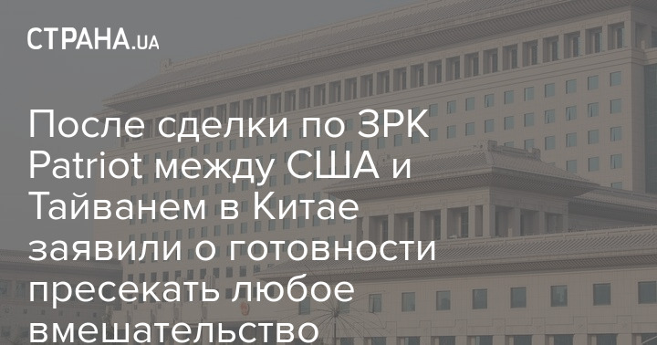 В Китае прокомментировали одобренную США сделку с Тайванем на сумму в 100 миллионов долларов по обслуживанию ЗРК Patriot. Представитель министерства обороны КНР У Цянь заявил, что Народно-освободительная армия Китая примет все необходимые меры для защиты суверенитета и пресечения любого внешнего вмешательства.