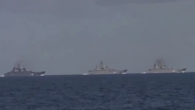 Корабли направляются в сторону Крыма для участия в учениях. Скриншот из видео