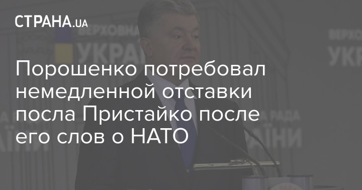 Лидер "Европейской солидарности" Петр Порошенко потребовал немедленной отставки посла Украины в Великобритании Вадима Пристайко из-за его слов о том, что Украина может отказаться от вступления в НАТО ради предотвращения войны с Россией.