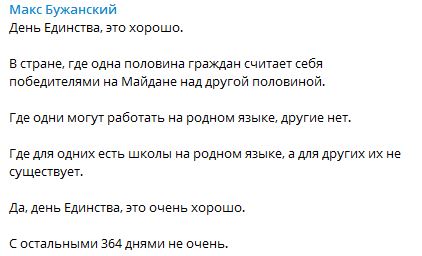 С остальными 364 днями не очень" - написал депутат от "Слуги народа" Макс Бужанский.